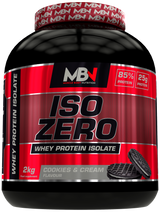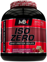 Kies je voor MBN ISO ZERO 100% Isolate dan kies je voor unieke zuiverheid. Door een serie van geraffineerde scheidingsprocessen worden overtollige vet, cholesterol, suiker en andere stoffen uit het product verwijderd zodat in totaal slechts 1.0 g vet, 0,5 g suiker in het product verwerkt zit. Eén portie bevat hier door maar liefst 86% puur eiwit.