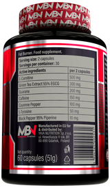 MBN's Fat Burner is een voedingssupplement met een uitzonderlijke mix van volledig natuurlijke componenten die de stofwisseling stimuleren, vet verbranden en honger onderdrukken. Het helpt bij het behouden van een gezond lichaamsgewicht door het lipolyseproces, de afbraak en verbranding van vetweefsel, te bevorderen en te versnellen. Elke trainingssessie met onze Fat Burner omvat zowel krachtige stimulatie als een stimulerende energieboost. De componenten in MBN's Fat Burner-pil zorgen samen voor een uitstekende effectiviteit...